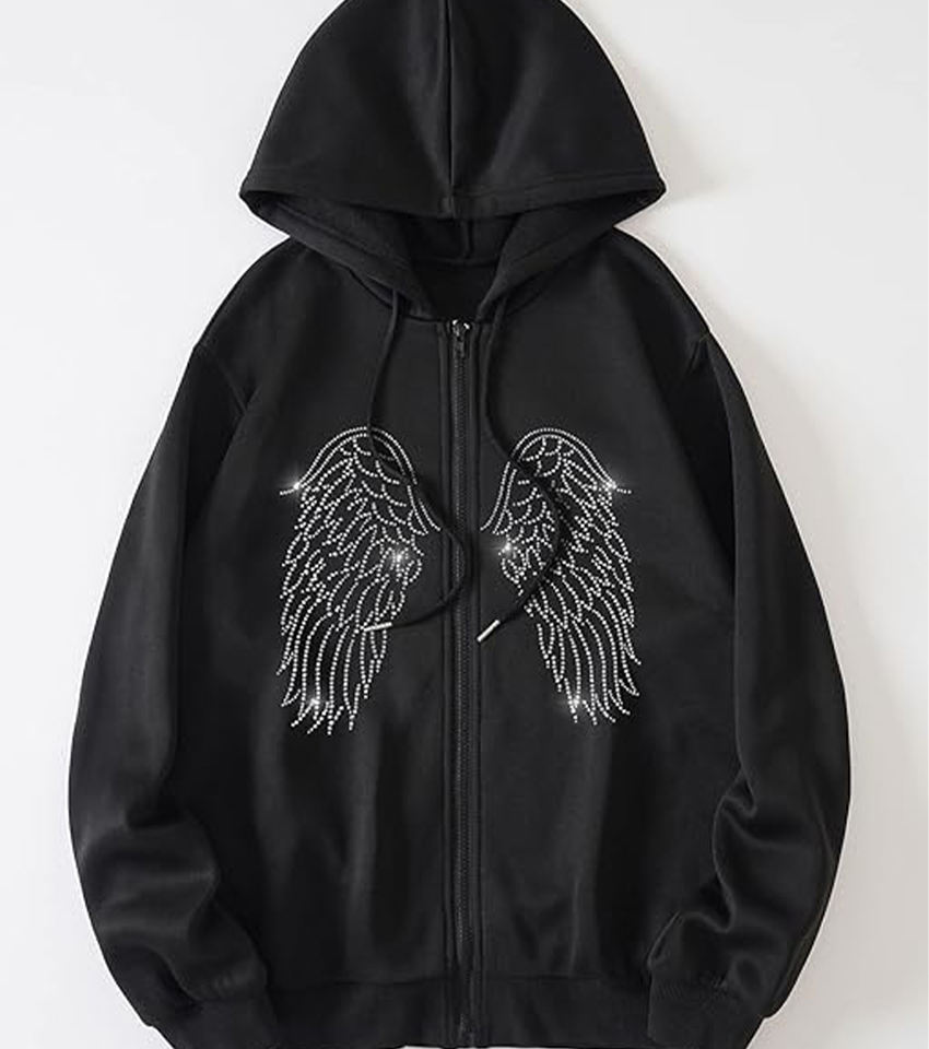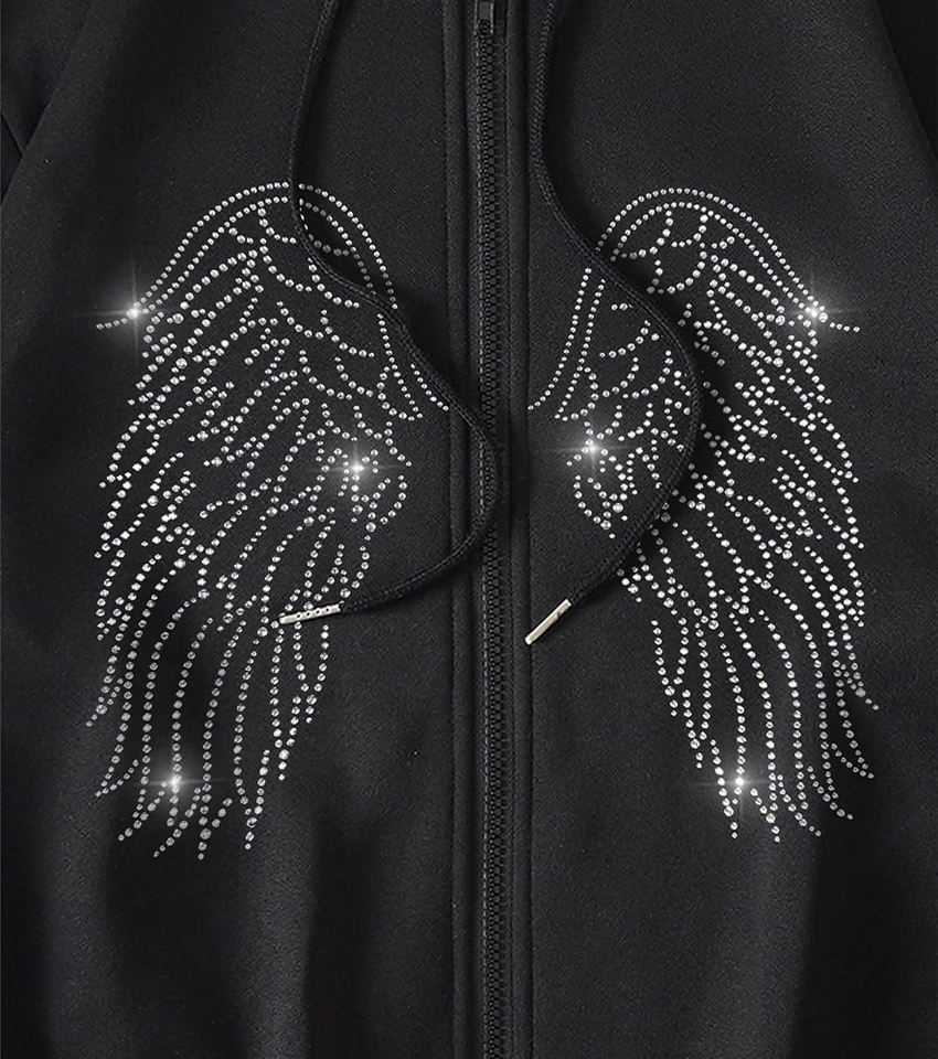 Keywords:Custom Logo Sweatshirts for Women Rhinestone Wing Zip Up Hoodies
