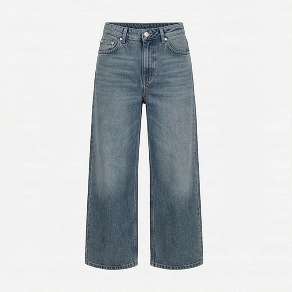 Vintage High Waist Women's Denim Trousers Slimming Pear Shaped Loose Straight Bell Bottoms Customized Color Baggy Woven