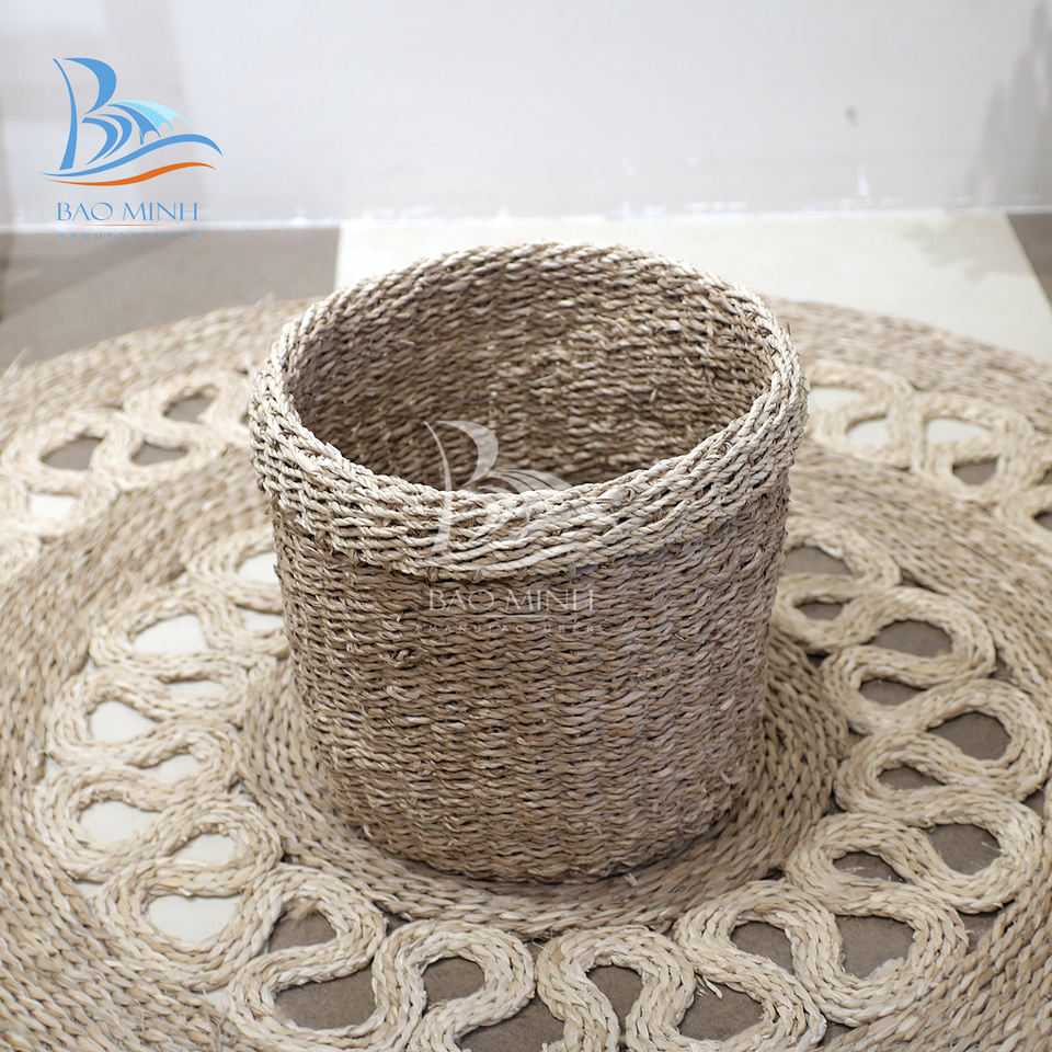 Large Vintage Seagrass Storage Basket with Handles Hand Woven Laundry Basket for Bathroom or Toy Storage Home Decor