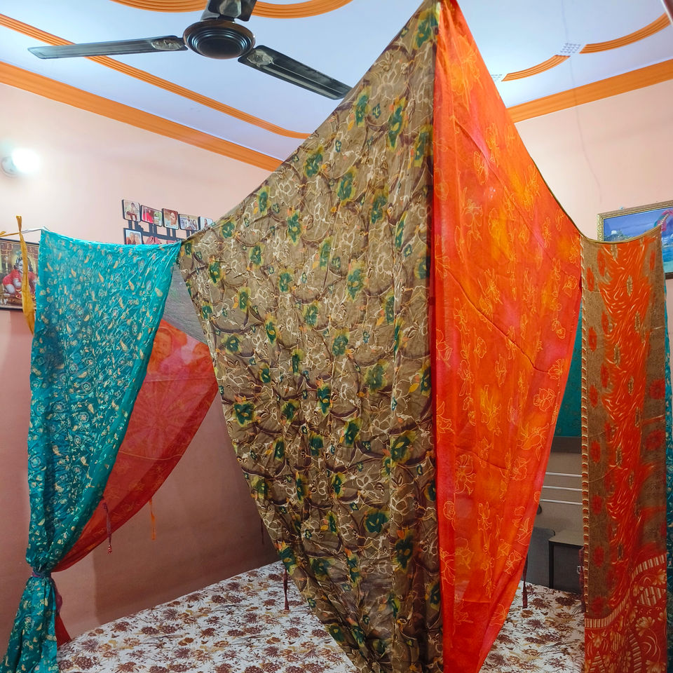 Vintage Indian Sari Saree Inspired Multi-Color Beautiful Mosquito Net & Bed Canopy Curtains for Home Decor or Camping