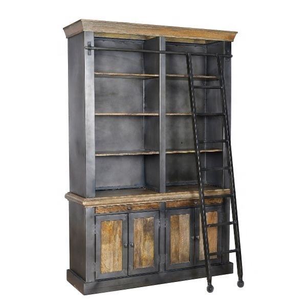 Vintage Industrial Iron Wardrobe with Solid Mango Wood Top and Iron Ladder Retro Styled Home Furniture