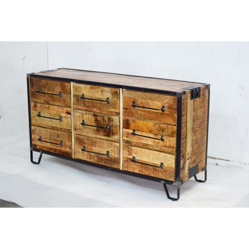Vintage Industrial Solid Wood Multi-Drawer Cabinet Rustic Finish Home Furniture for Living Room Office Convertible for Farmhouse