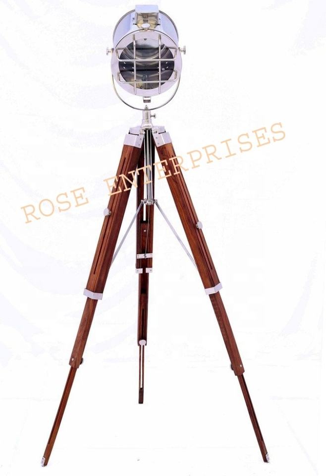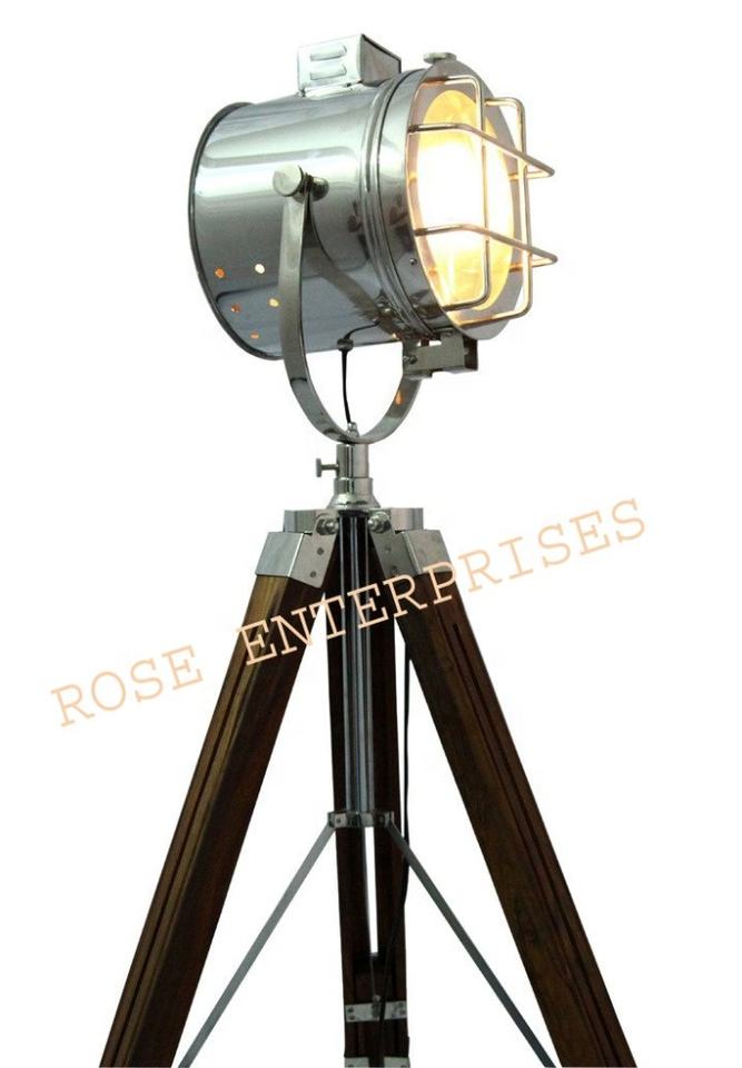 Vintage Industrial Spot Light With Wooden Tripod Stand Spot Light Searchlight Home Office Conner Light Floor Lamp Decorative