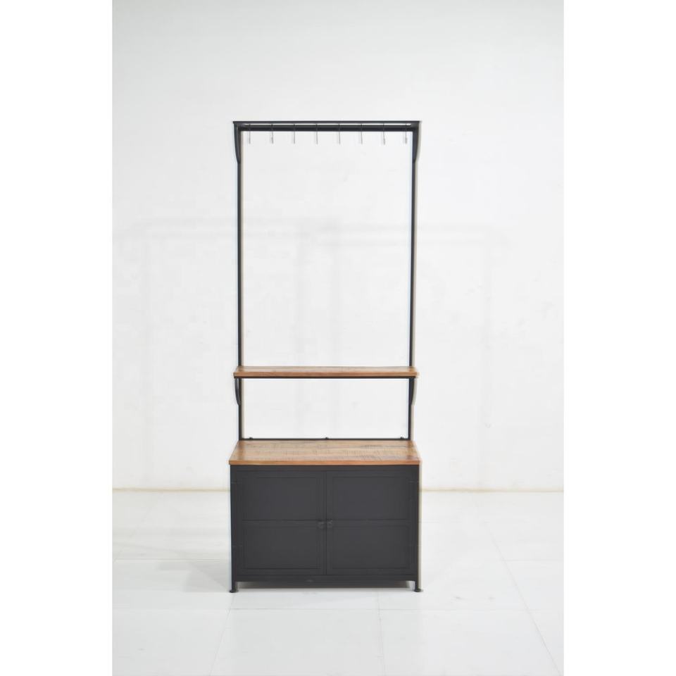 Vintage Industrial Style Tall Iron Frame Mango Wood Top Storage European Coat Rack With Shoe Stand