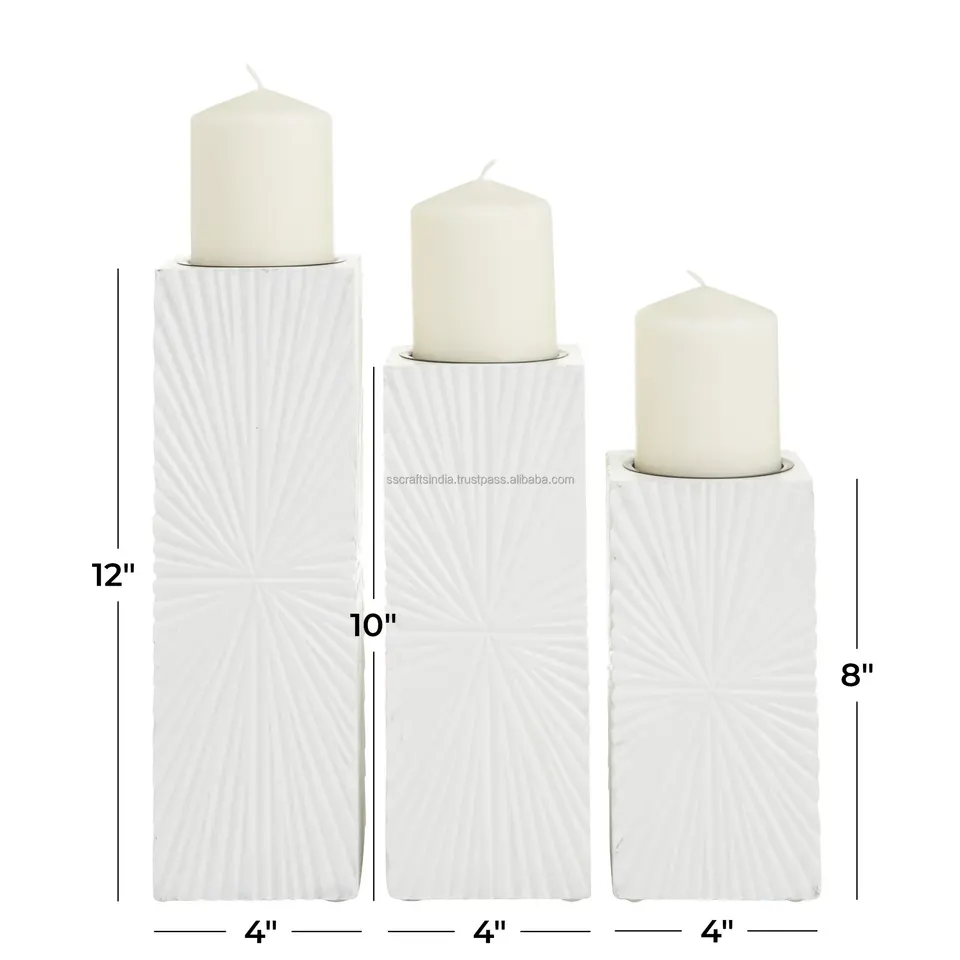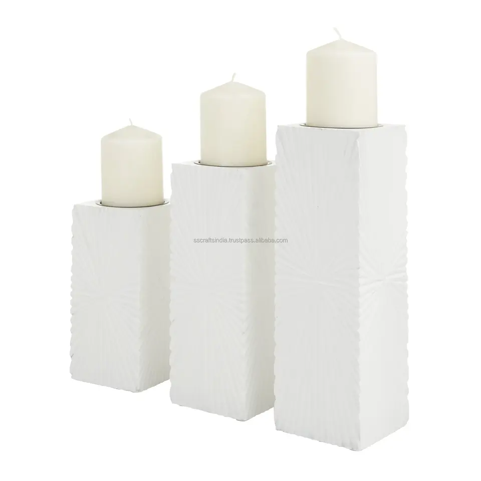 Vintage Ins Style White Wooden Holders Engraved Tea Light Candle Stand Pillar Pattern Christmas Table Centerpiece Wedding Decors