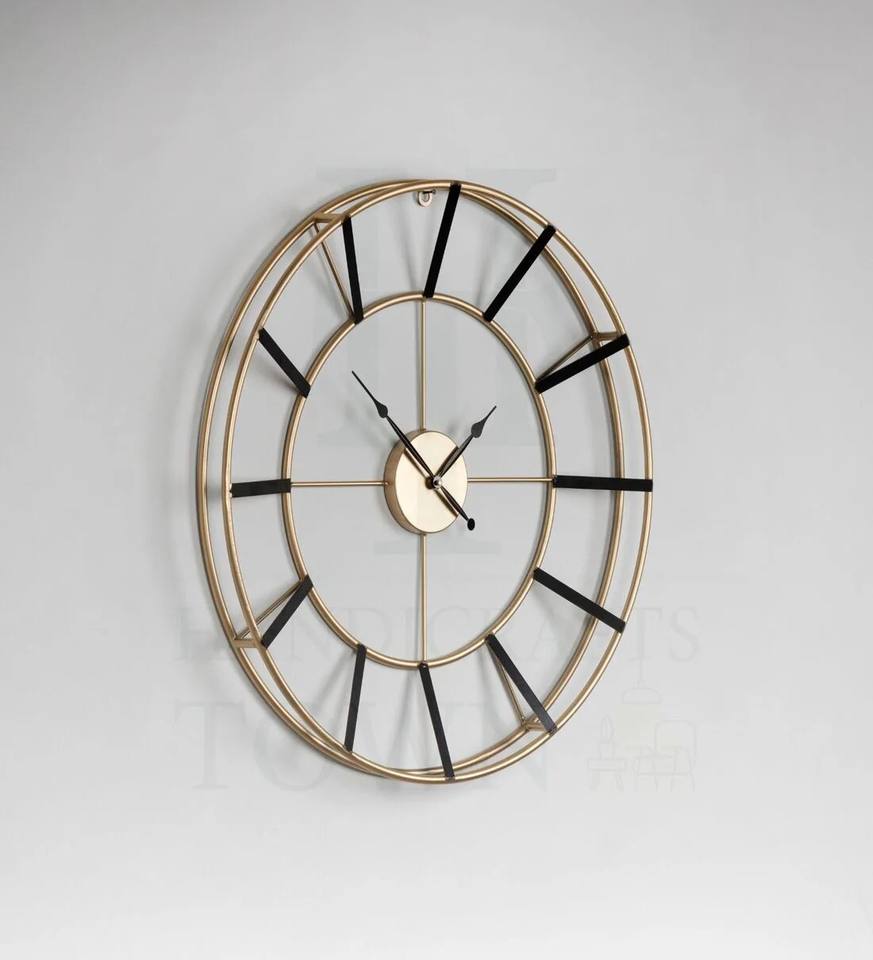 Vintage Inspired Black and Bronze Roman Numeral Wall Clock with Industrial Metal Frame for Home and Timeless Interior Decor