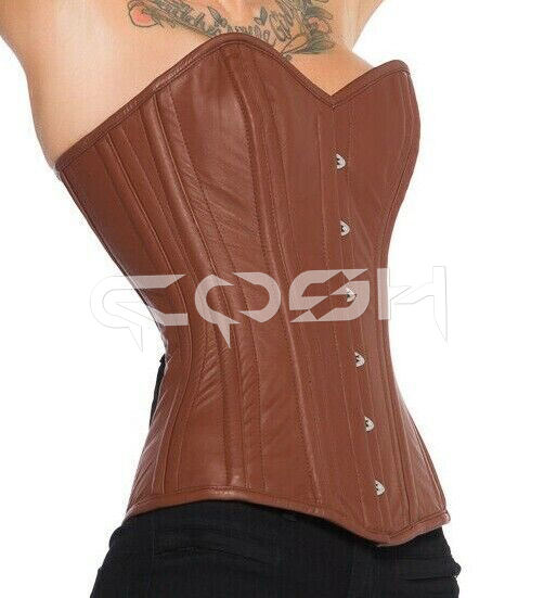 Vintage Inspired Brown Leather Overbust Steelboned Corset With Adjustable Back Laces