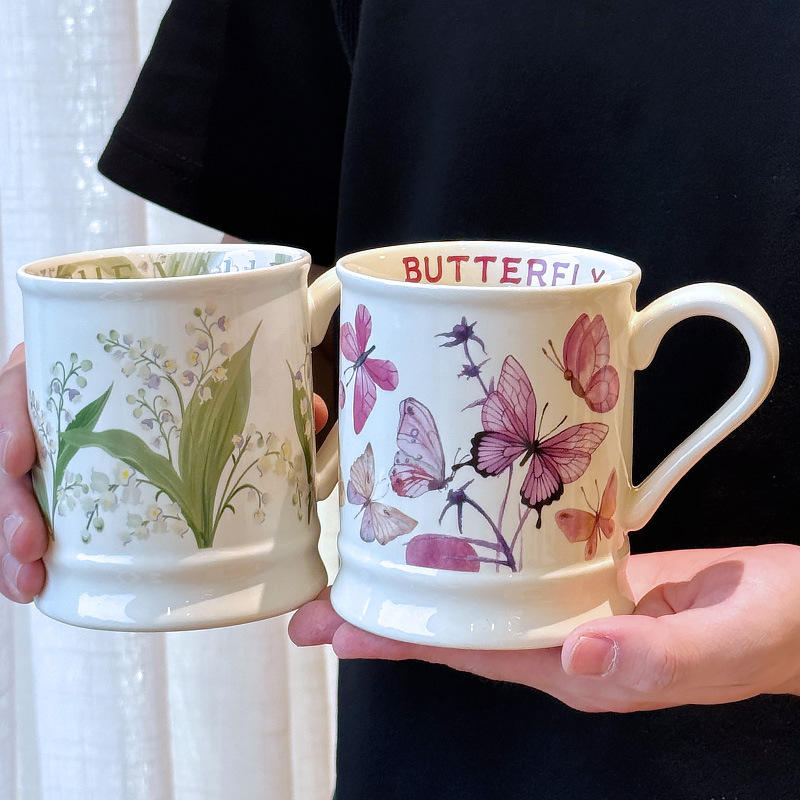 Vintage Inspired Ceramic Mug Bellflower Design With Handle Single Cup For Home Office Coffee Use Spring 2025 Presents