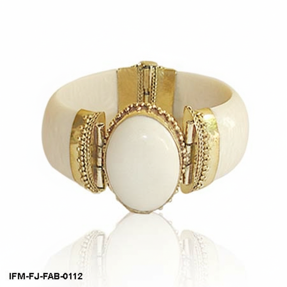 Vintage Inspired Cream Resin Cuff Bangle Gold Filigree Statement Bracelet Stackable Fashion Jewelry