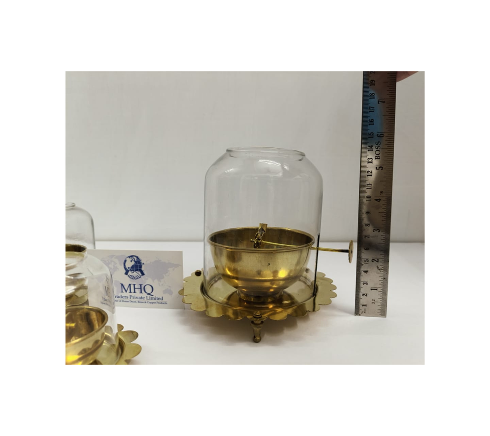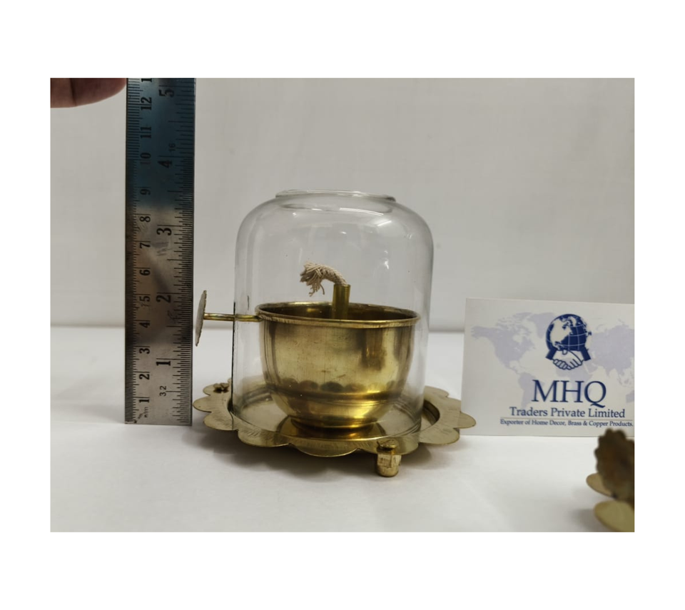 Vintage Iron Akhand Jyoti Diya Molded Glass Plate 18 cm Round Shape Gold-plated Golden Oil Lamp Diwali Puja Temple Home Decor