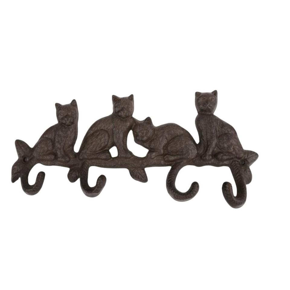 Vintage Iron Cat Wall Hook Rack Decorative 4 Hook Key Holder Cat Tails Wall Mounted Coat Hanger For Home Decor On Sale
