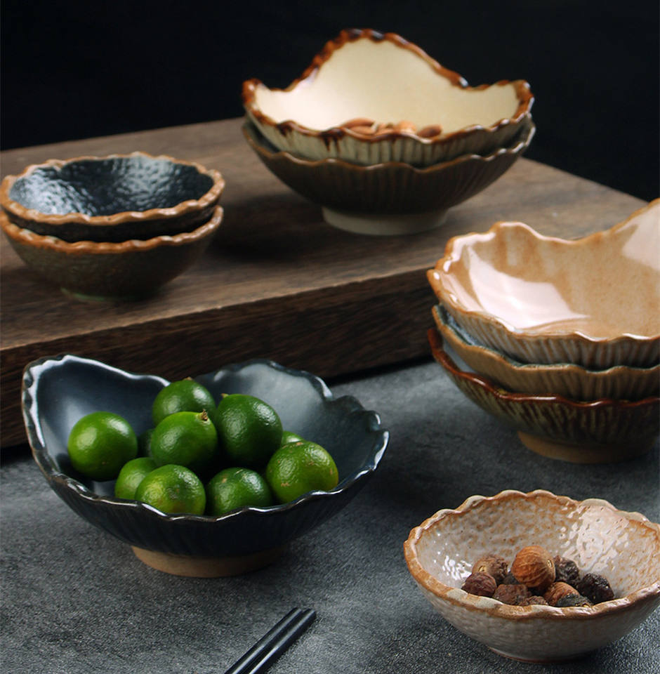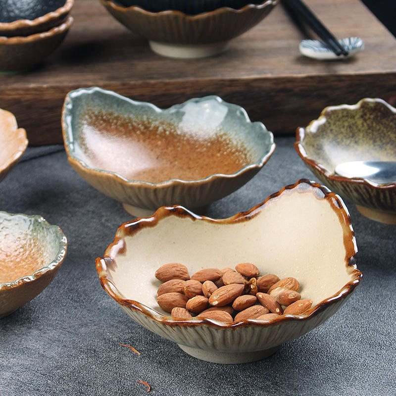 Vintage Irregular Ceramic Salad Bowls Porcelain Japanese Snack Serving Bowl Dessert Bowls for Restaurant Bar Tableware