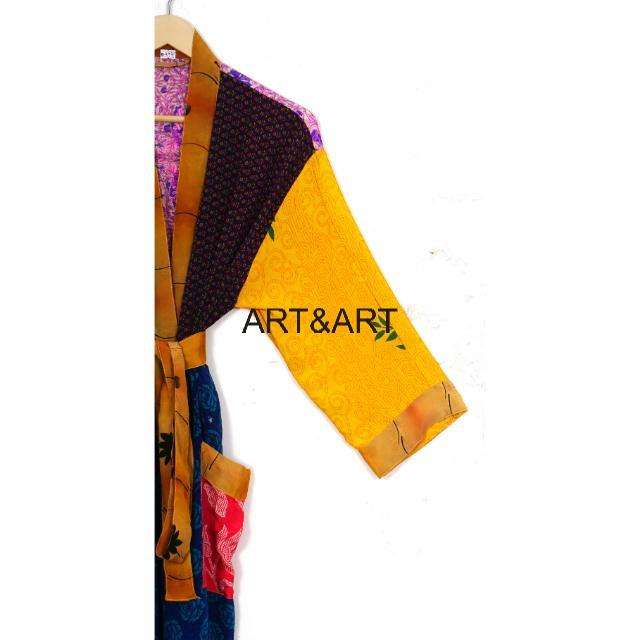 Vintage Japanese Luxury Silk Kimono Beach Party Bikini Robe Women Wear Pure Silk Sari Long Dressing Gown Boho Silk Duster Jacket
