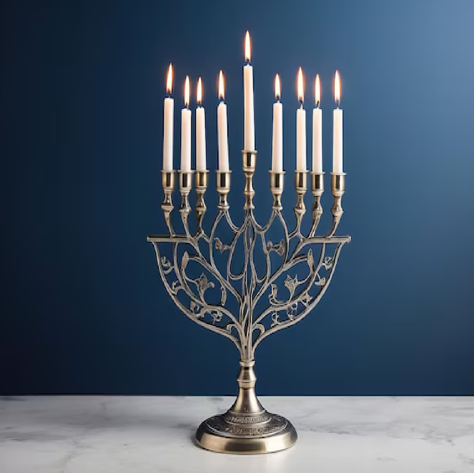 Vintage Judaica X Large Old Jewish Gold Brass Hanukkah Menorah With Eilat Stone, Modern Candlestick Jewish Menorah 9Arm Hanukkah