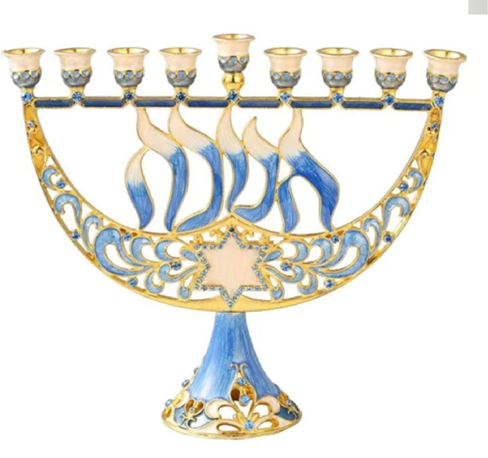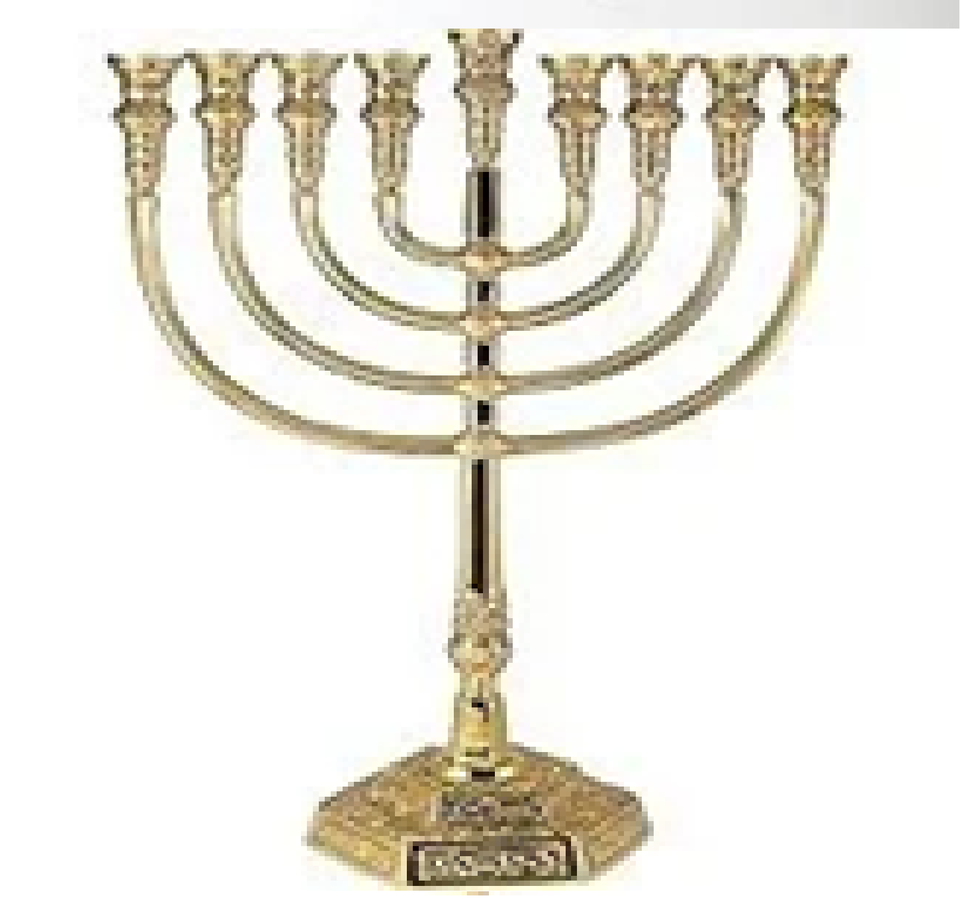 Vintage Judaica X Large Old Jewish Gold Brass Hanukkah Menorah With Eilat Stone, Modern Candlestick Jewish Menorah 9Arm Hanukkah