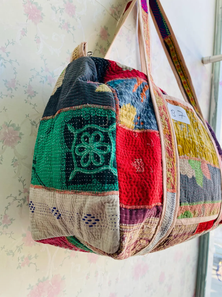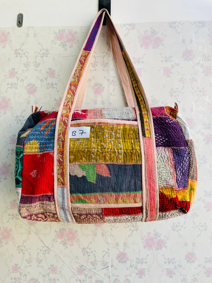 Vintage Kantha Duffel Bag Patch Kantha Gift for Him Cotton Duffel Gym Travel Bag