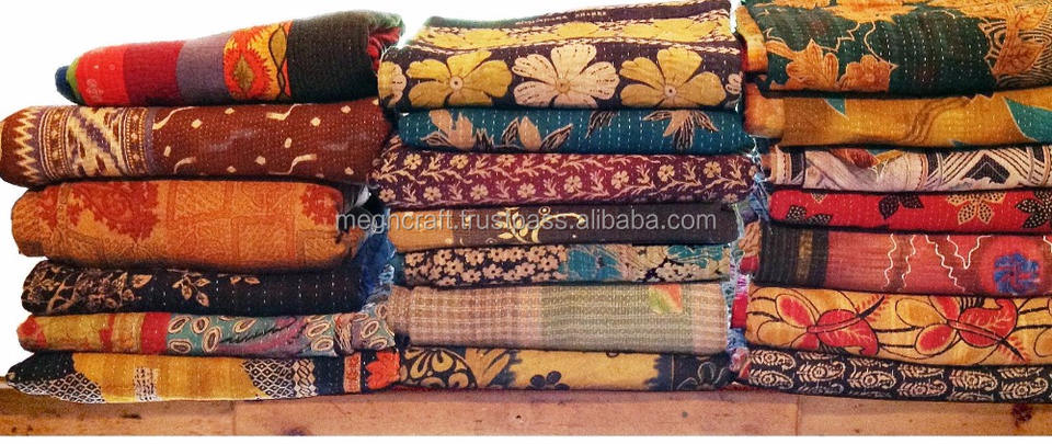Vintage Kantha Quilts - Wholesale Cotton Double Kantha Quilt -Patch Work Gudri - Reversible Throw - Rally Bedspread Bedding