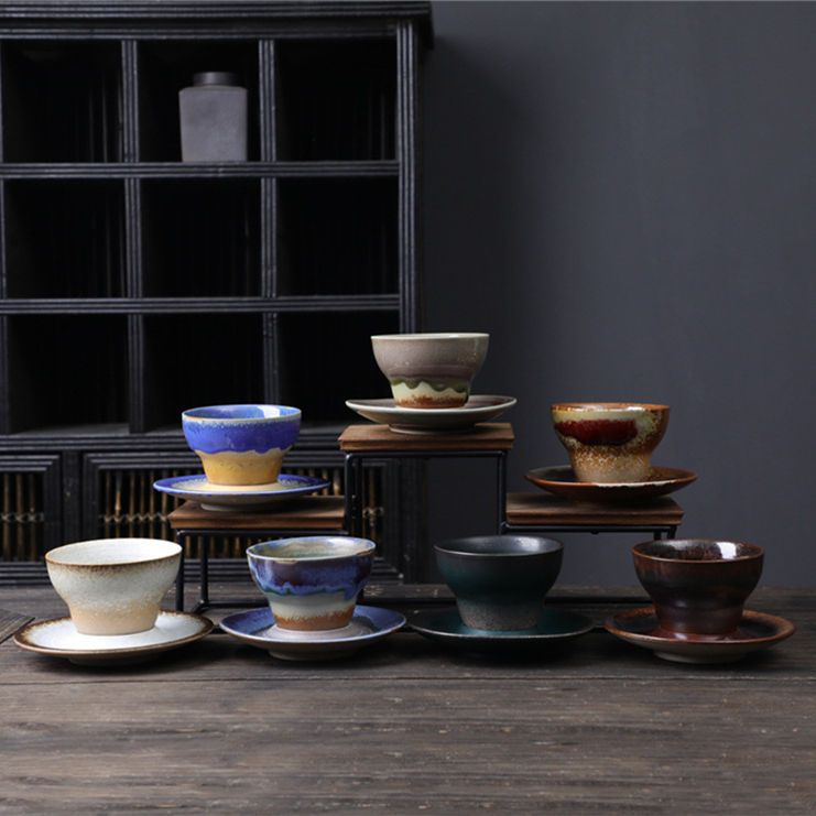 Vintage Kiln Reactive Funnel Ceramic Retro Clay Coffee Latte Cup With Saucer 160ml