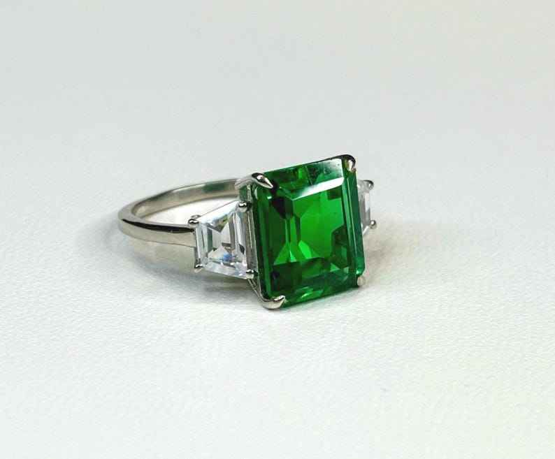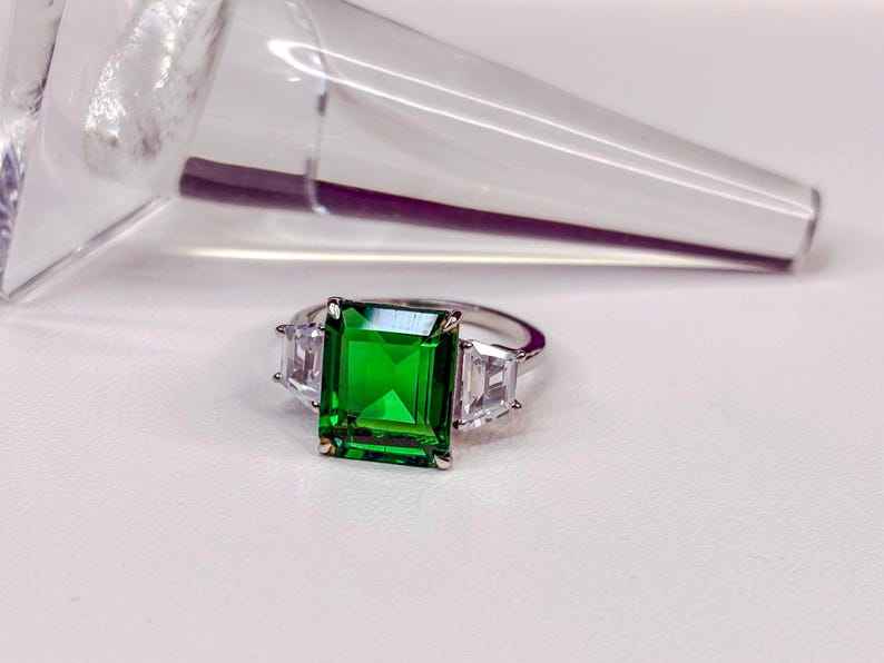 Keyword:Timeless Lab Emerald Ring with Vivid Green Stone Beautiful Jewelry