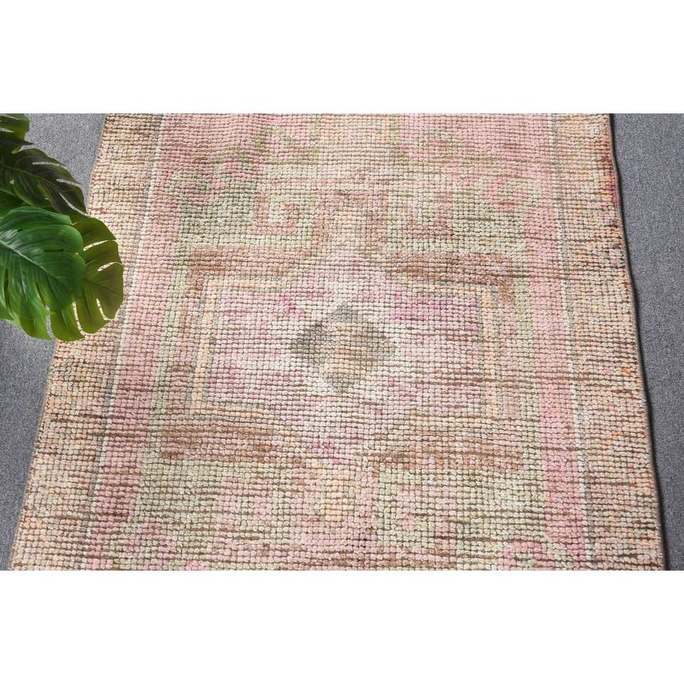 Vintage Large Area 3.1 X 11.1ft Turkish Rug Handmade Pink Beige Wool Latex Backing Rectangular Abstract for Hallway Room Decor