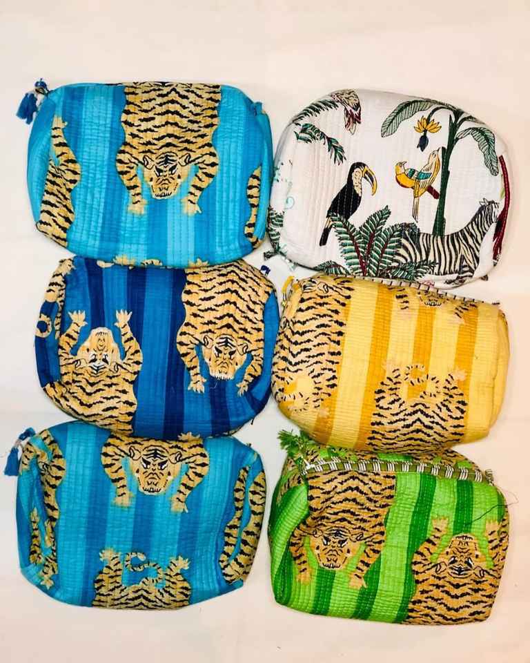 Vintage Large Cosmetic Bags Cotton Quilted Wash Bag Block Printed Handmade Toiletry Bag for Women