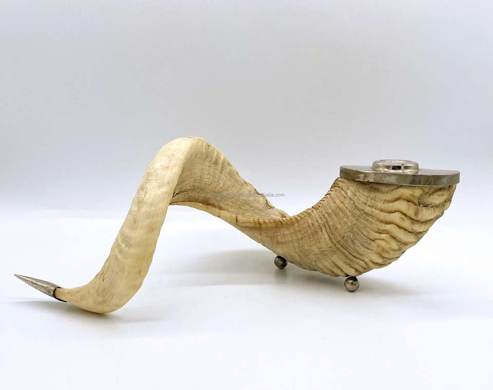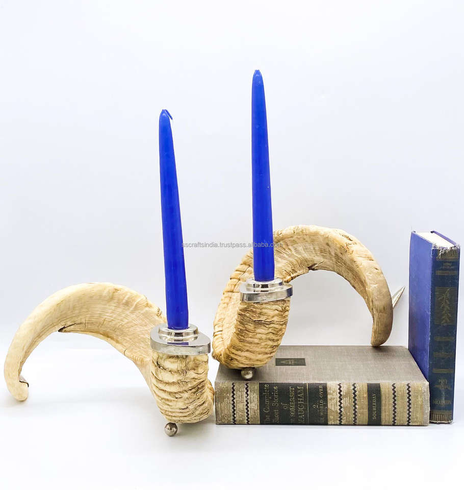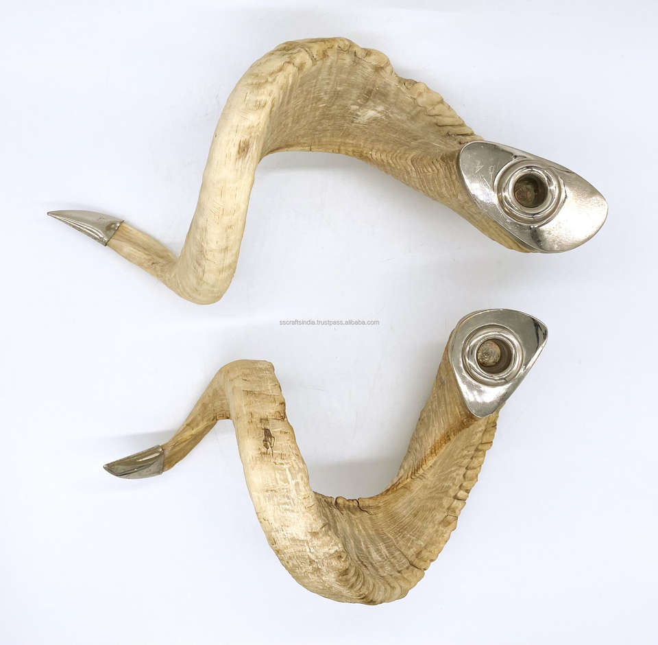 Vintage Large Silver Plate Candle Stand Ram Horn Brass-Plated Stick Christmas Table Centerpiece Mantle Decoration Rustic Design