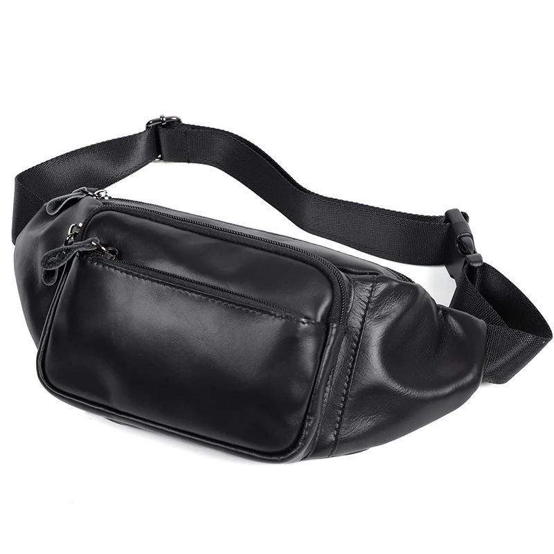 Vintage Leather Fanny Packs Mens Crossbody Chest Bag Simple Brown Soft Leather Sport Waist Belt Bag