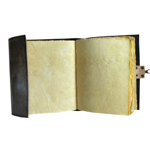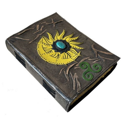 Sun & Moon Stone Handmade Yellow Charcoal Embossed Leather Journal