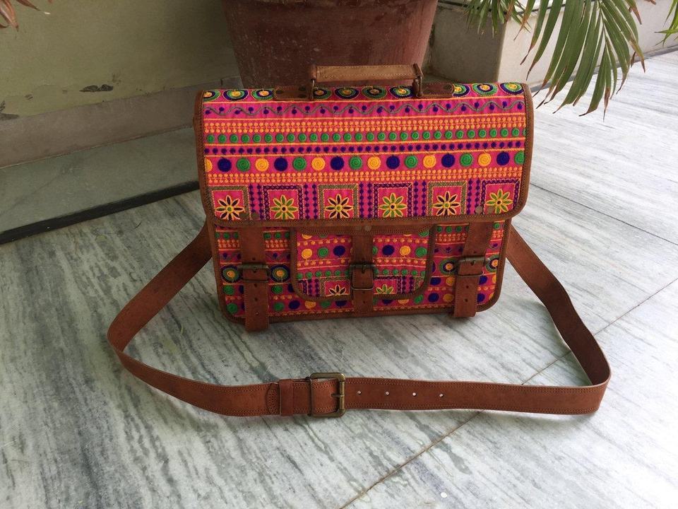 Vintage Leather Laptop Embroidered Work Shoulder Crossbody Men Women Messenger Satchel Briefcase Business Bag ALLB108