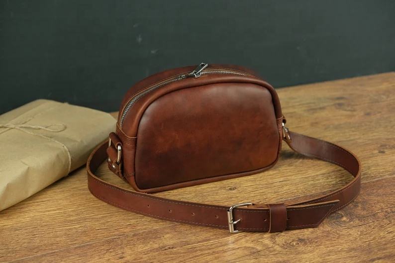 Vintage Leather Mini Handbags Crossbody Shoulder Bags Small sling Bag With Cross Body Strap Zipper Open Leather Hand Bags