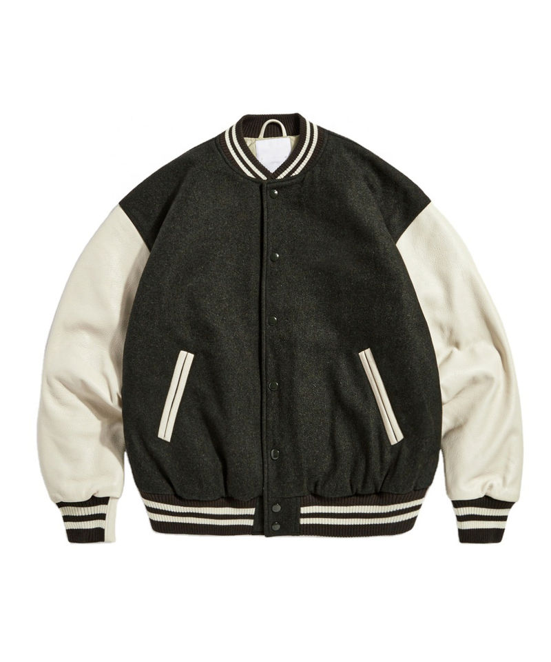 Vintage Letterman Varsity Jacket Autumn Winter Wool Leather Sleeves Pocket Embroidery CollegeBaseballjacket for men