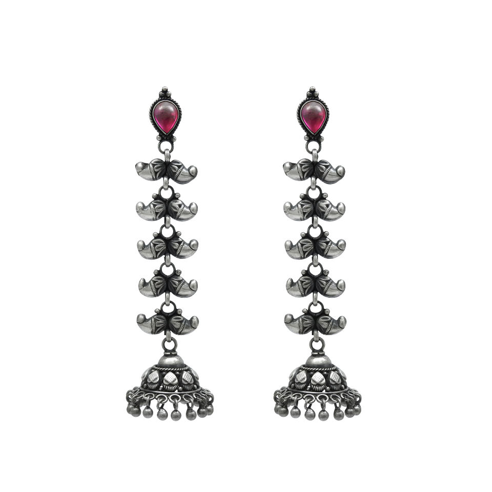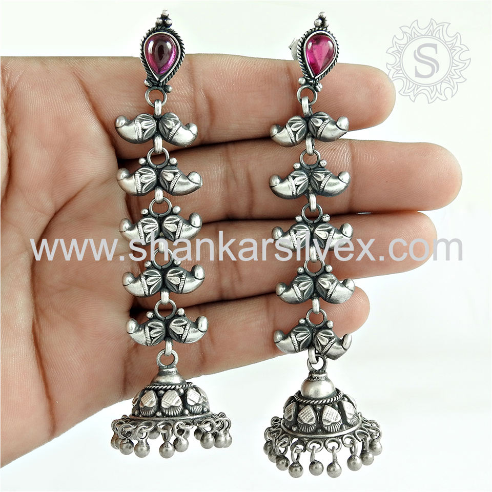 Natural Ruby Gemstone Ethnic Style 925 Sterling Silver Handmade Vintage Antique Silver Stud Earrings Jewelry for Women Wholesale