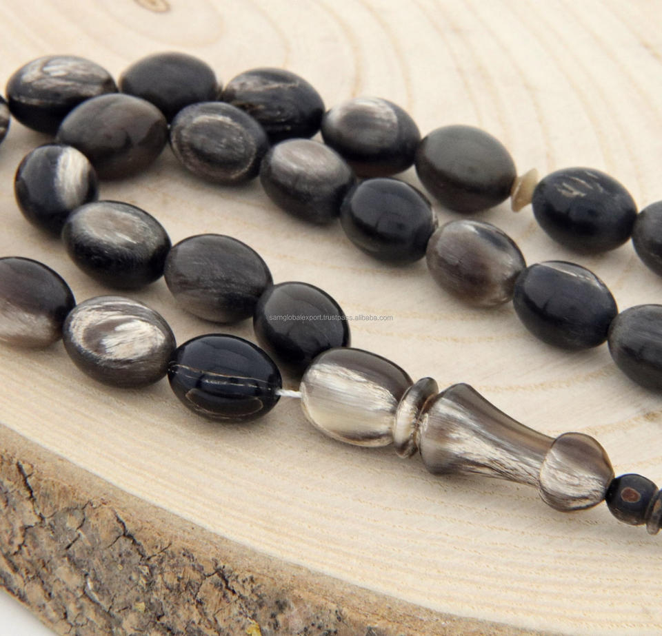 Vintage Look Natural Horn Islamic Rosary Tasbih Beads 33/100 Buffalo Horn Handmade Real Touch Prayer Beads Misbaha Traditional