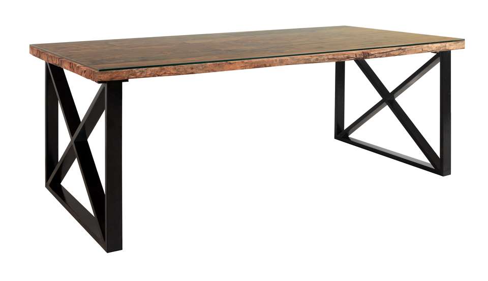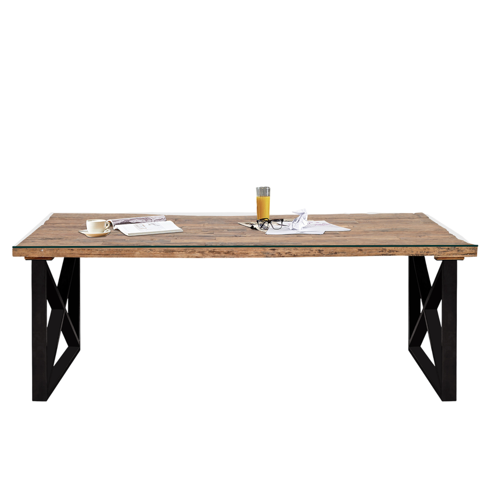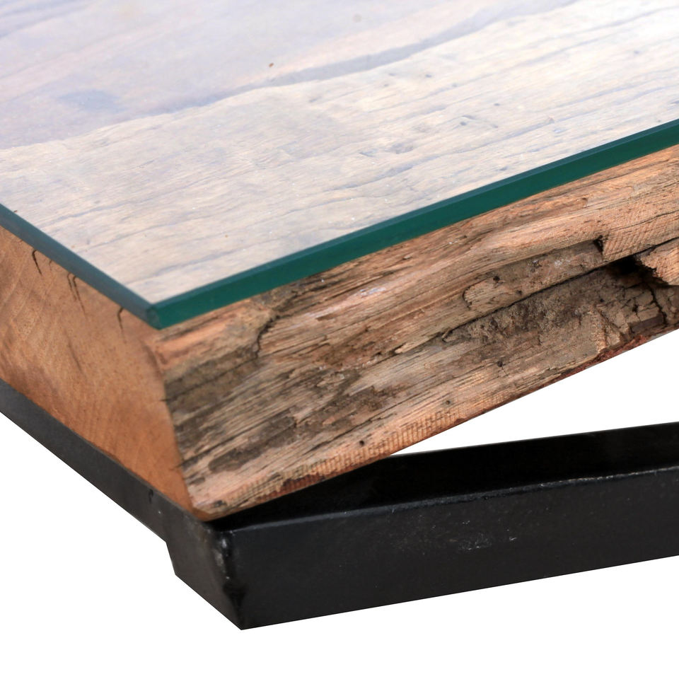 Vintage Look Reclaimed Sleeper Wood Natural Crack Texture Square Top Industrial Iron X Shape Leg Kitchen Restaurant Dining Table
