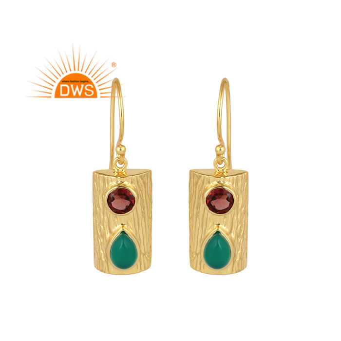 Vintage Look Silver Earrings Jewelry Supplier Green Onyx & Garnet Gemstone Gold Plated Silver Dangle Earrings Vintage Collection