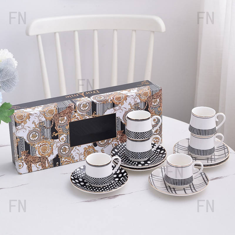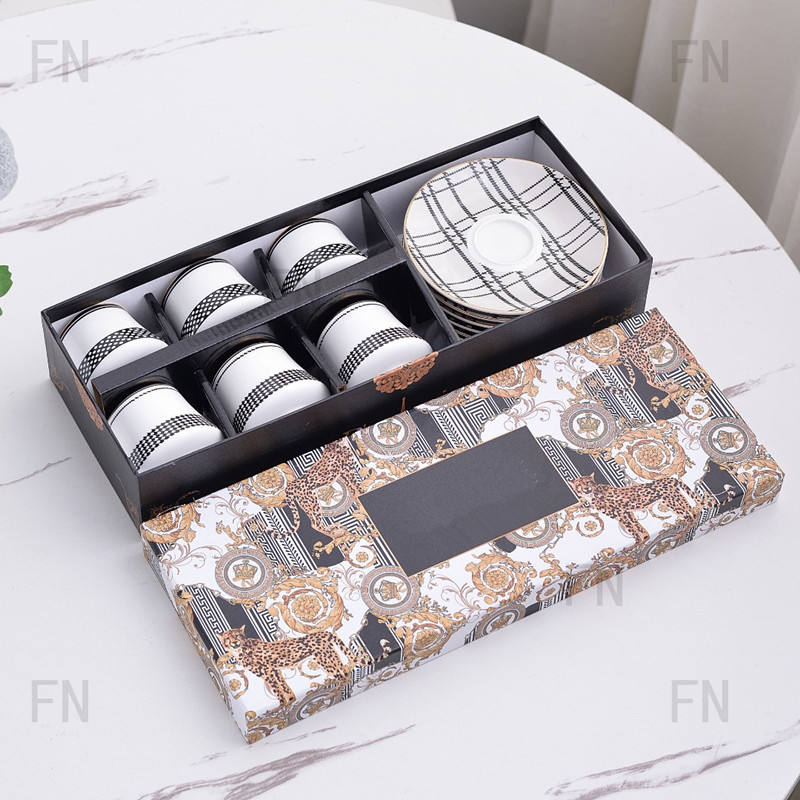 Vintage Luxury Ceramics Coffee Cup and Saucer Set of 6 Gift Box European Porcelain Cups Wedding Housewarming Gifts Home Decor