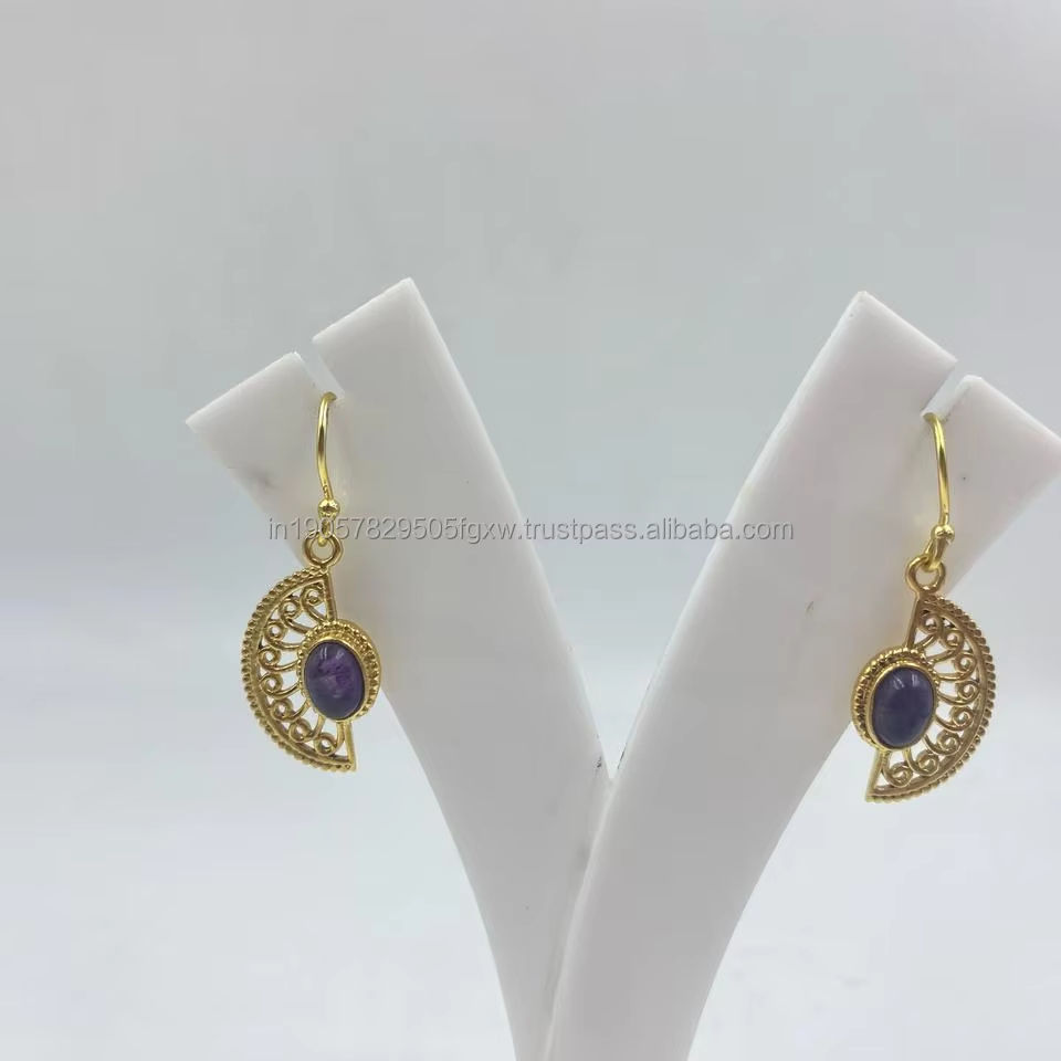 Vintage Luxury 925 Sterling Silver Pearl Earrings Gold Plated Sunstone Classic Women's Wedding Party Perfect Gift Best Price