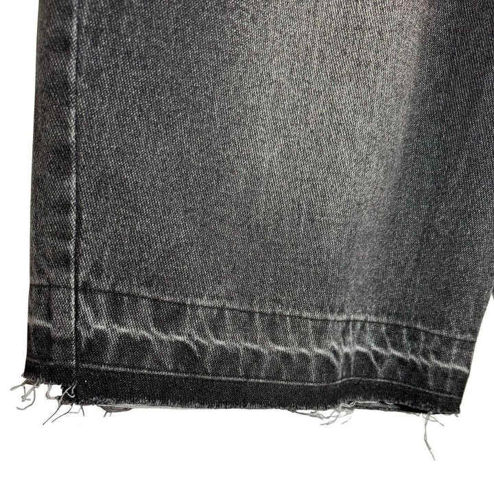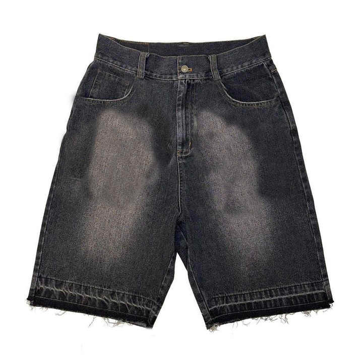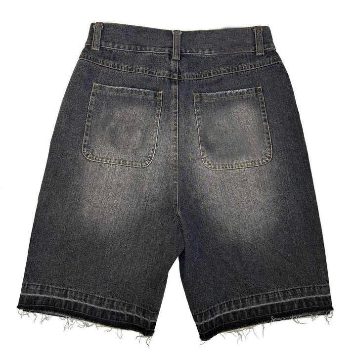 Vintage Men's Baggy Straight Loose Denim Shorts Black Washed with Custom Logo Embroidery Streetwear Style Shorts For Men