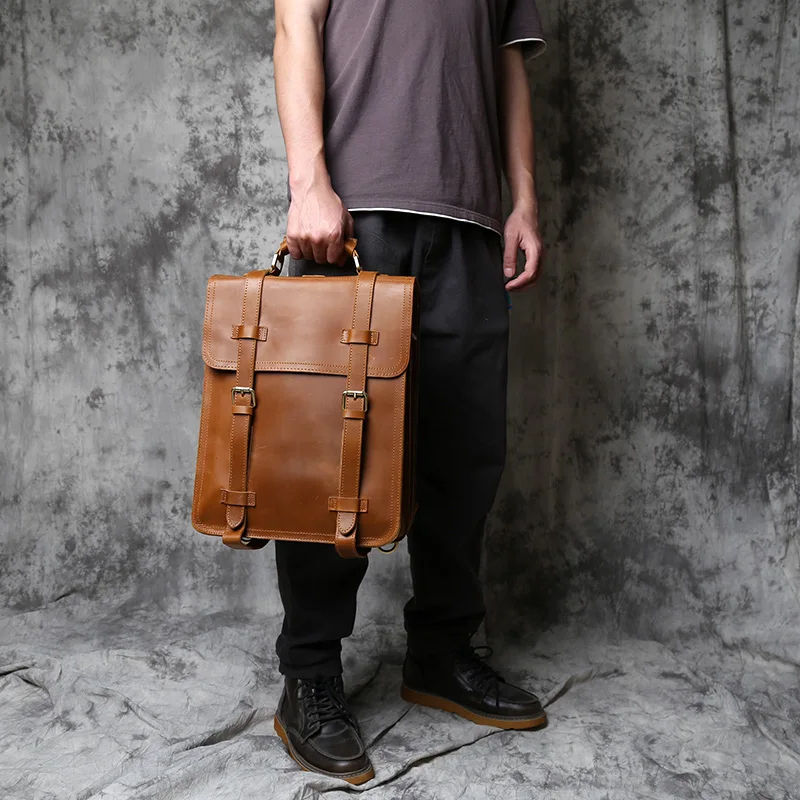 Vintage Men's Genuine Leather Backpack Crazy Horse Leather Travel Bag Large Capacity Laptop Backpack School Bag