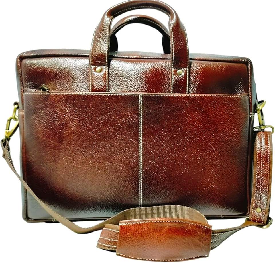 Vintage Men's Genuine Leather Laptop Briefcase Crazy Horse Crossbody Office College Satchel Messenger Bag Bohemian Button Zipper