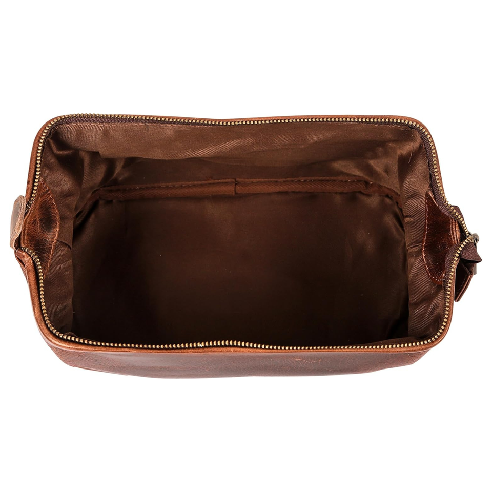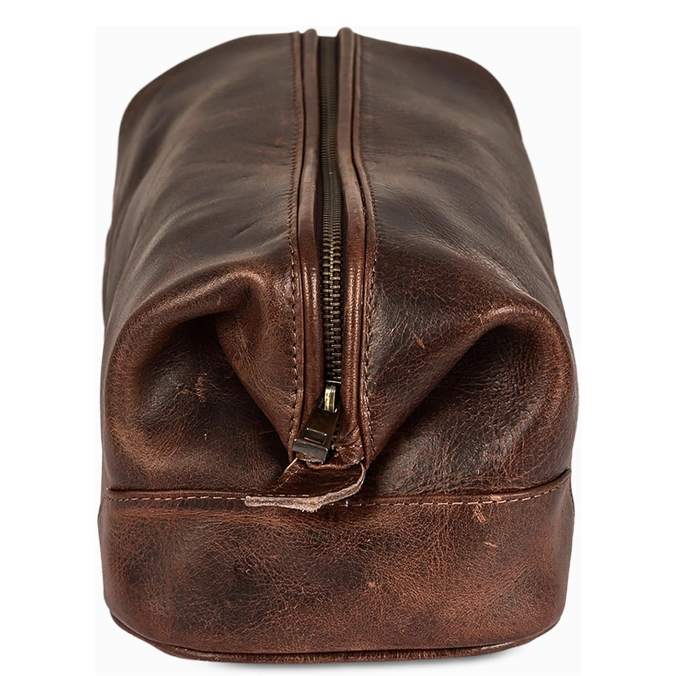 Vintage Men's Handmade Genuine Leather Toiletry Bag Fashionable Travel Dopp Kit Shaving Organizer with Zipper Pockets