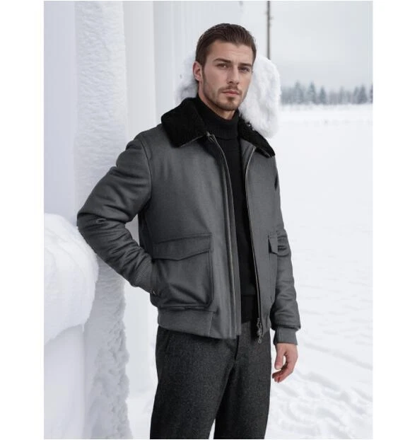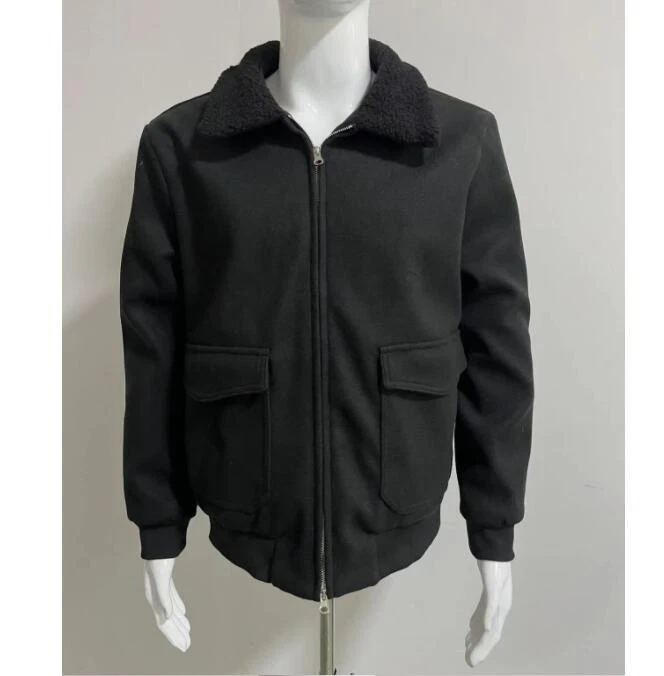 Vintage Men's Lapel Coat with Zipper and Large Pocket Solid Color Autumn Winter Casual Style