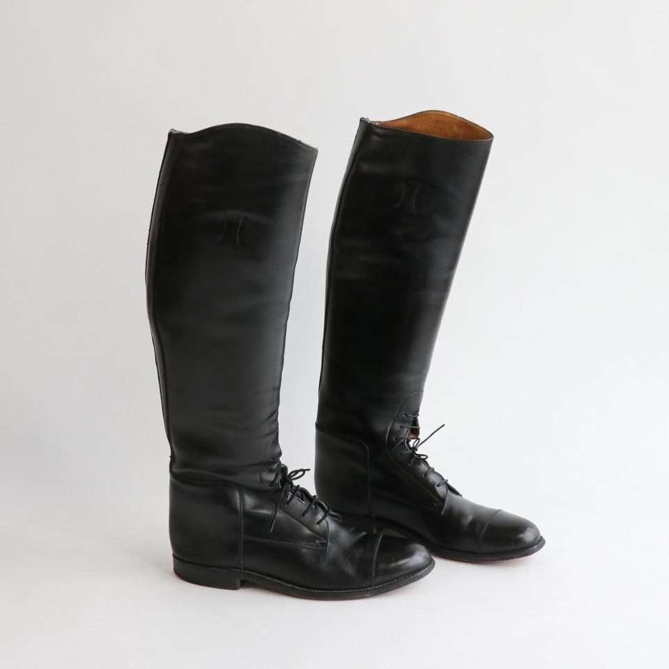 Vintage Men's Leather Equestrian Boots / Men's Black Leather Polo Boots