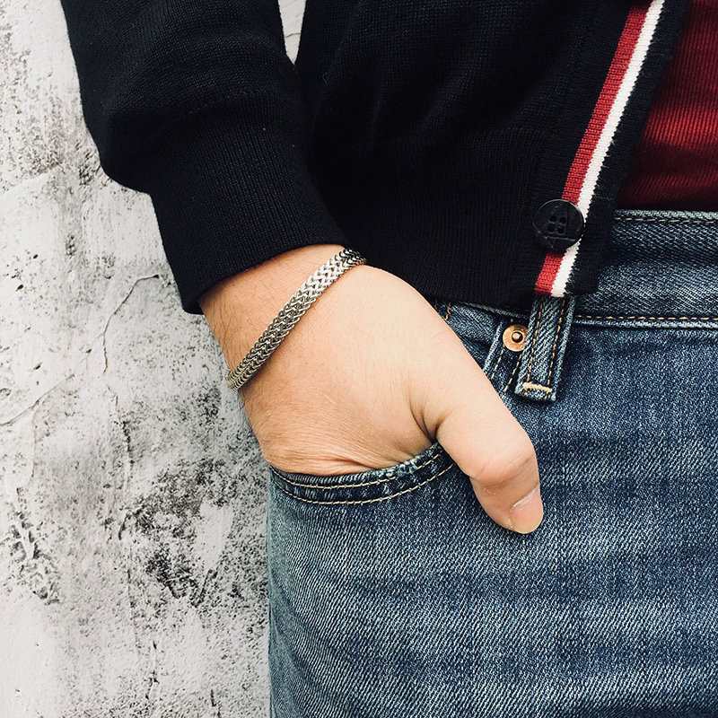 Vintage Mesh Male Men's Sier Gold Black Plated Waterproof Stainless Steel Tarnish Free Fashion Jewelry Chain Bracelets for Man