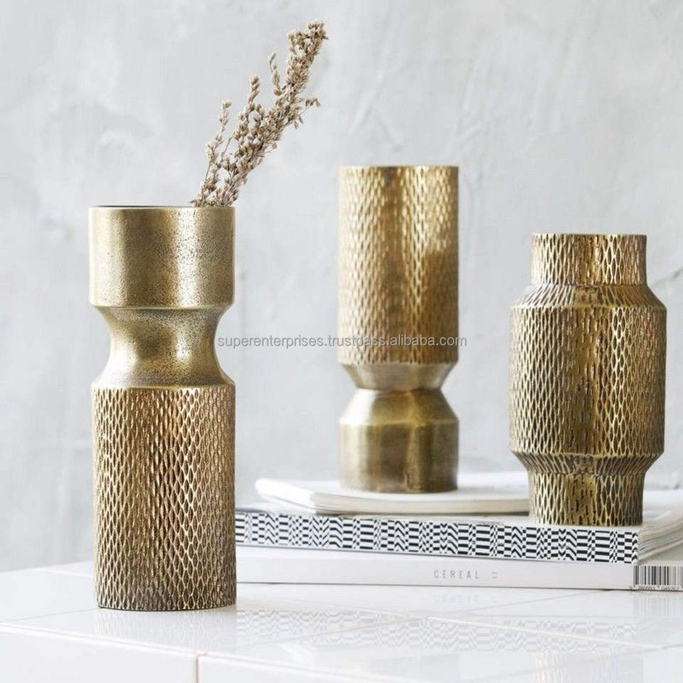 Vintage Metal Flower Vase Designed For Classic Interior Decor Dining Table Shelf Accent Decoration