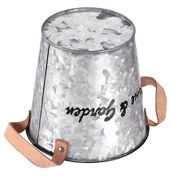 Rustic Iron Flower Pot - Garden Home Decor Classic Design Planter Vintage Metal Round Bucket Planter with Woods Handles