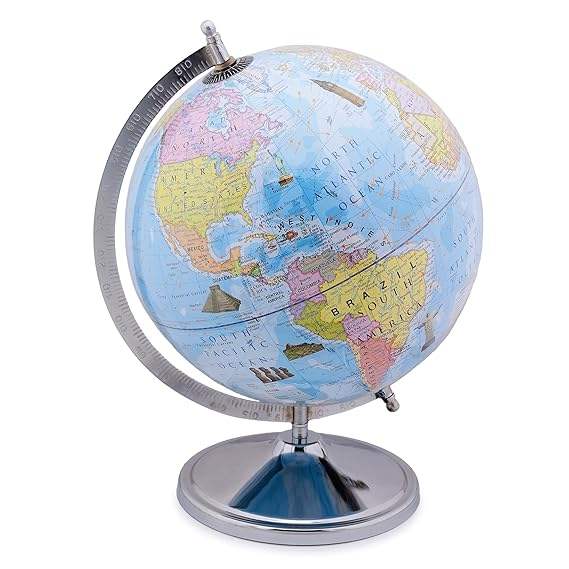 Vintage Mid-Century Modern 12-inch Desktop Globe Solid Wood Tripod Base Antique Style Decorative World Globe for Office Decor