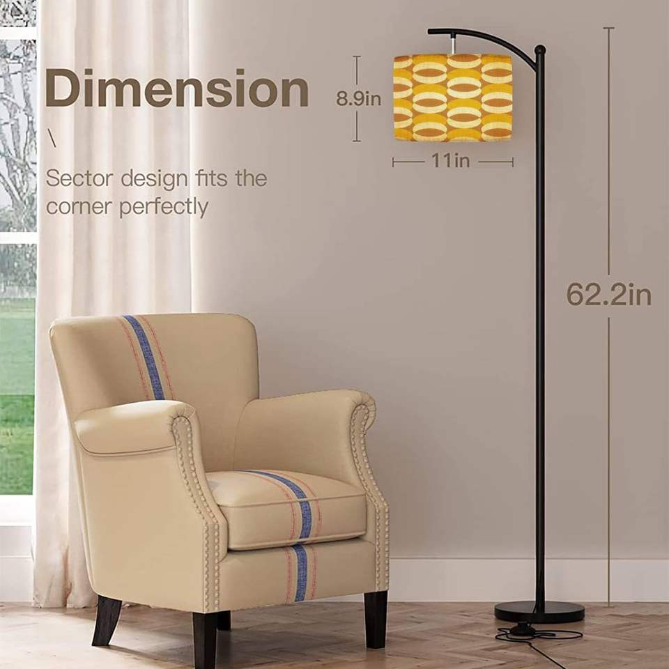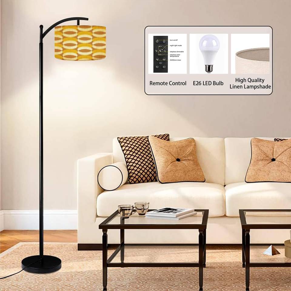 Vintage Mid-Century Modern Arc Floor Lamp 70s Retro Style Contemporary Design Dimmable LED with Remote & E27 Base