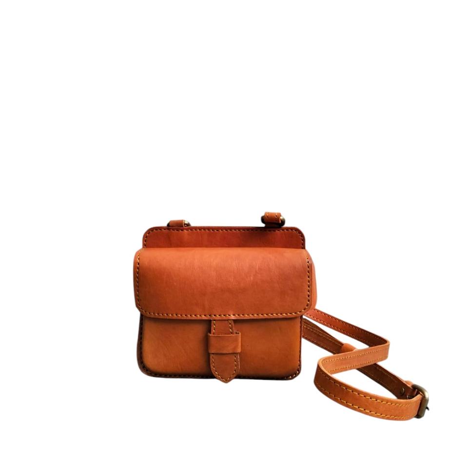 Vintage Mini Leather Crossbody Sling Bag Trendy Classic Casual Preppy Style for Spring and Summer Handmade From Indonesia