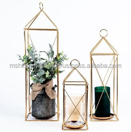 Vintage Mini Metal Glass Candlestick Wedding Lanterns for Home Tabletop Outdoor Decor